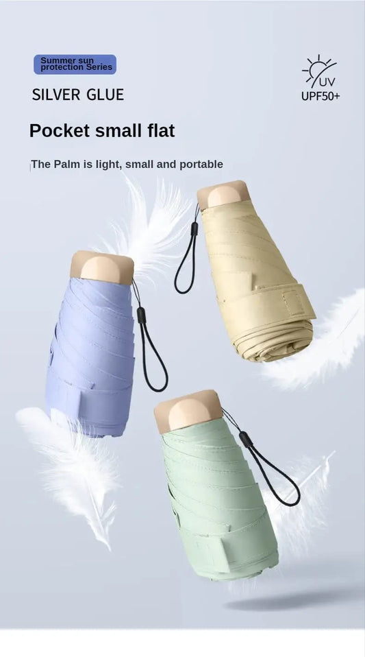 Mini Pocket Umbrella Small Sun Rain Umbrella Vinyl Folding Umbrella UV Ultraviolet Protection Sun Shade Pocket Parasol Capsule (COLOUR RANDOM)