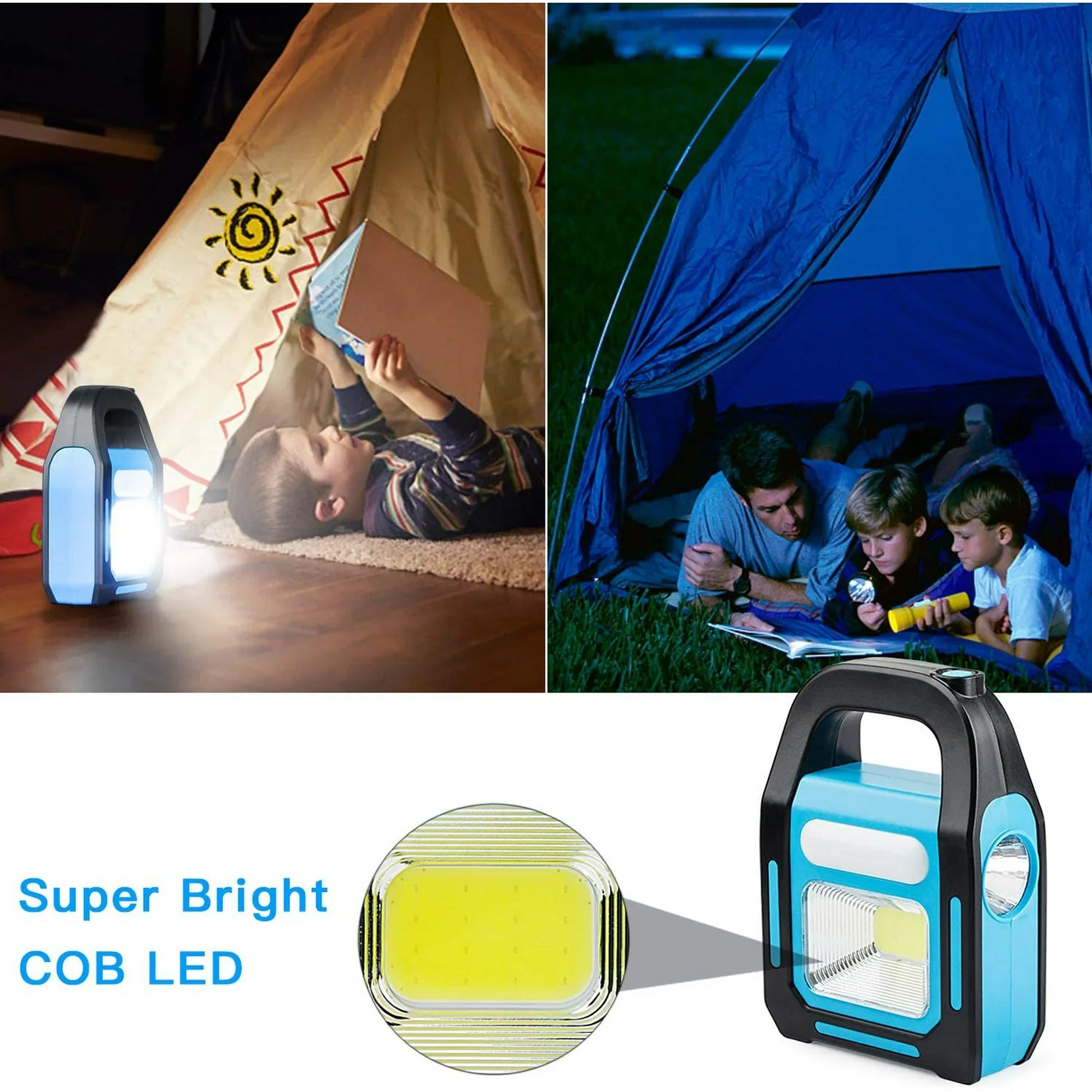 【Multifunction 3 IN 1 Design】: Front light-Auxiliary light-Side light COB. It could as a Camping Lantern, Flashlight.