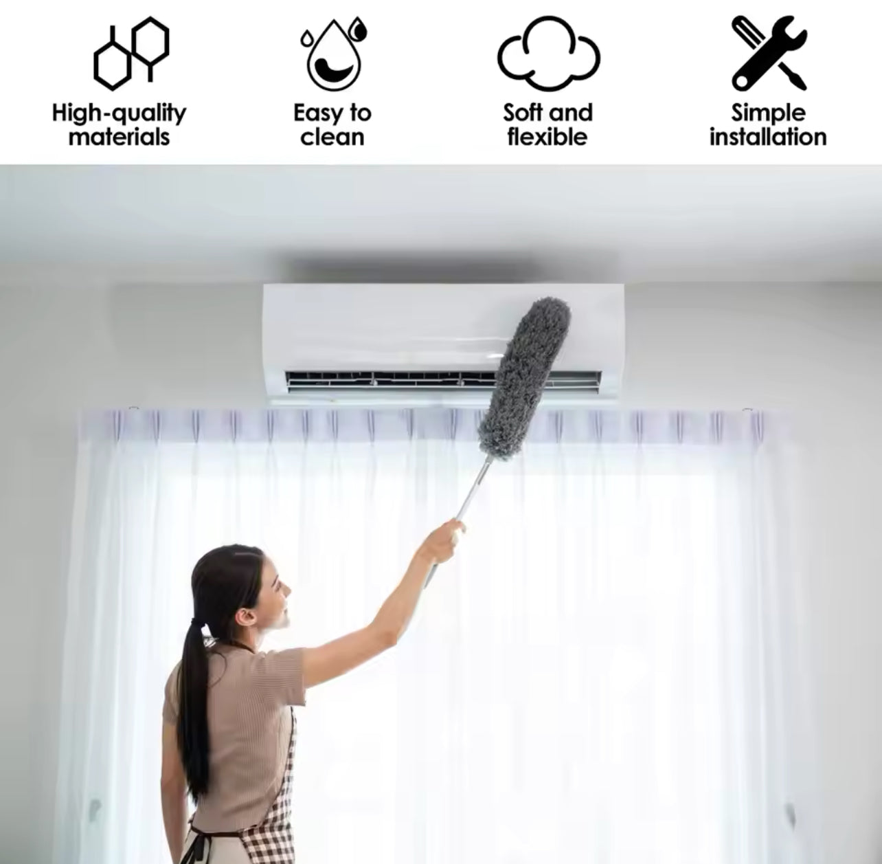 ventilated place to dry. We have also designed the base of the extending rod with a hanging hole to make it storage friendly. Duster Easy to Clean. Want to