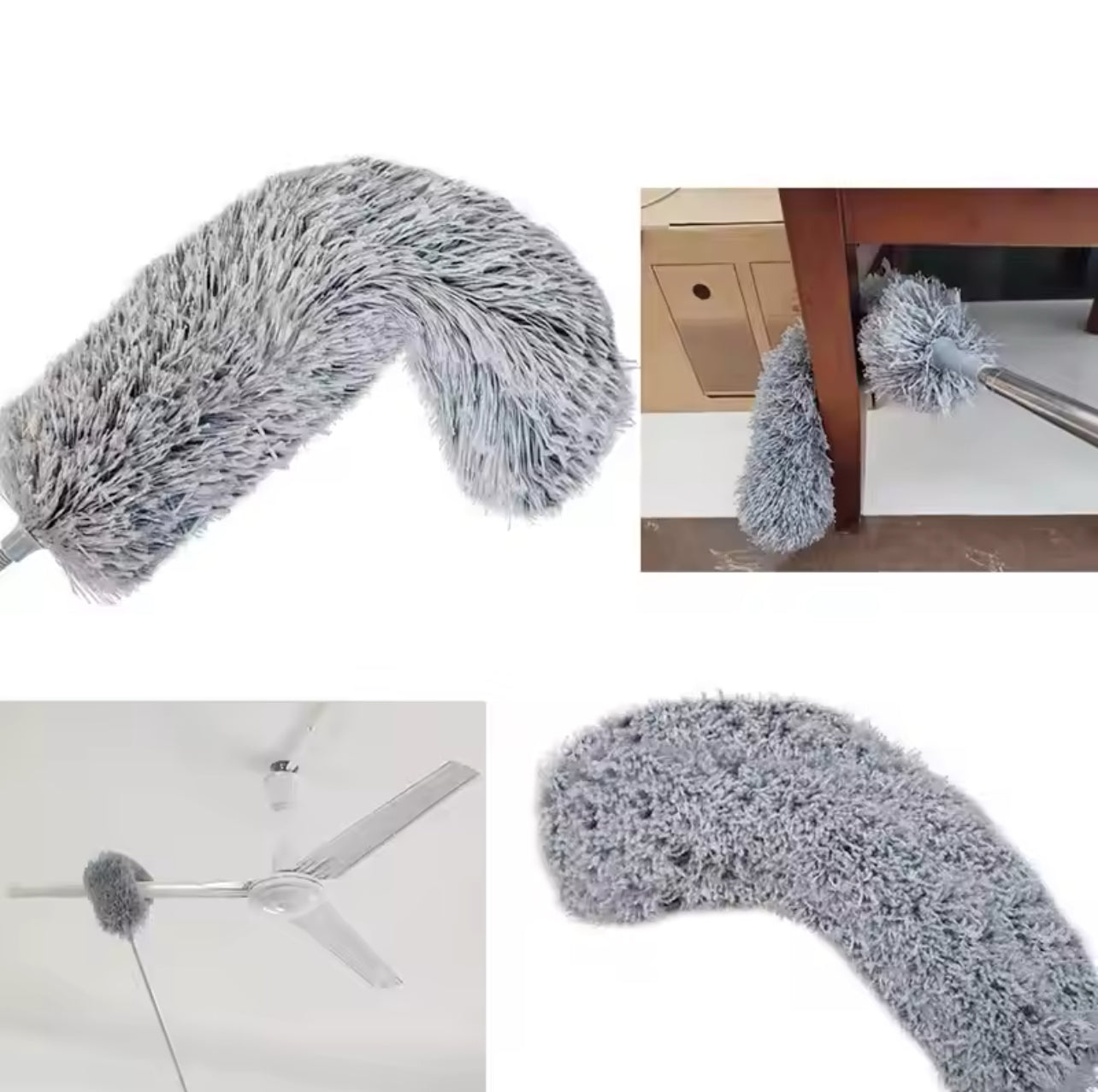 Washable Duster Fan Cleaning Duster Stainless Steel Body Flexible Fan mop for Quick and Easy Cleaning of Home, Kitchen, Car, Ceiling, Cleaning Brush with Long Rod (Grey Fan Cleaner)