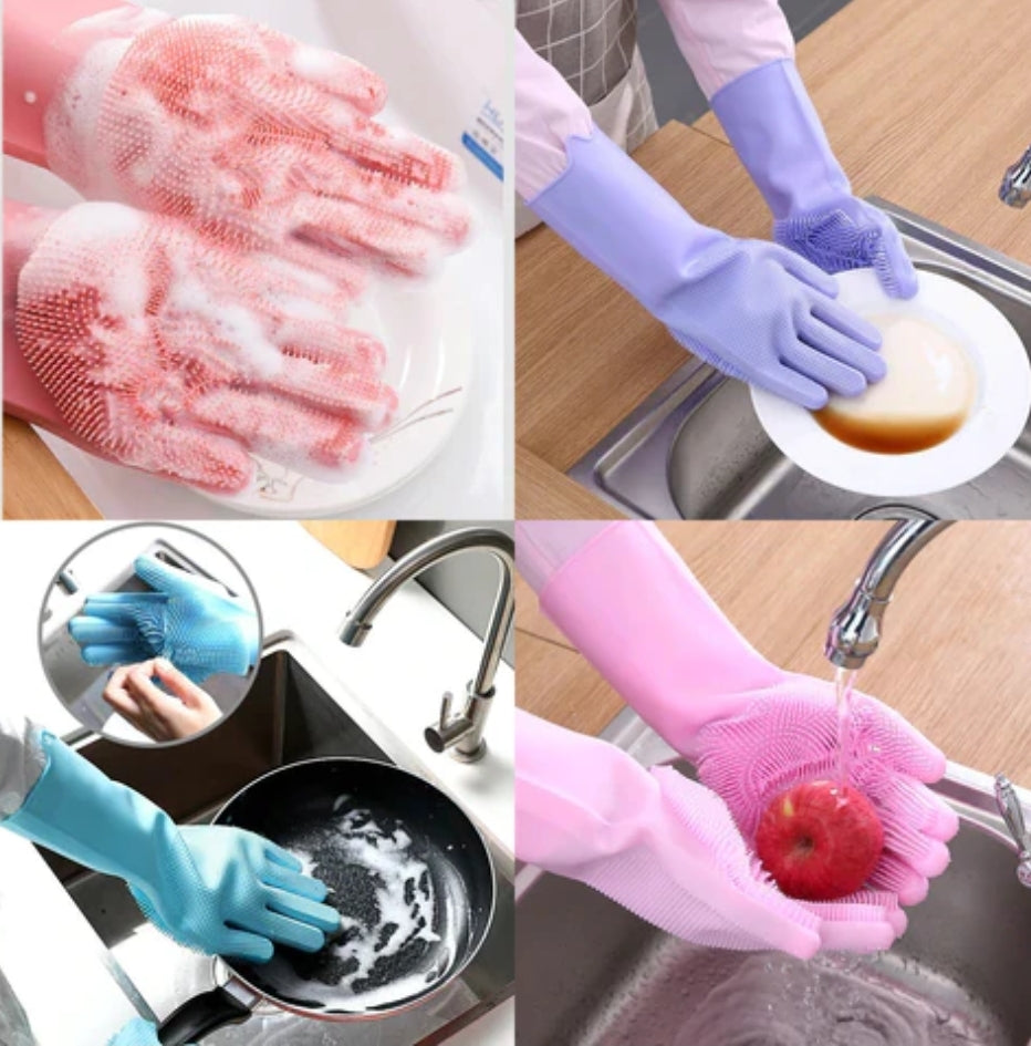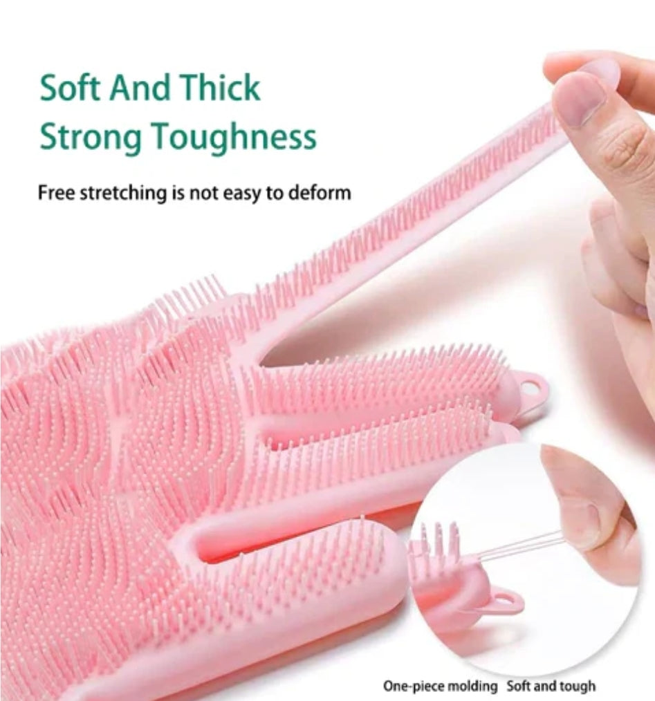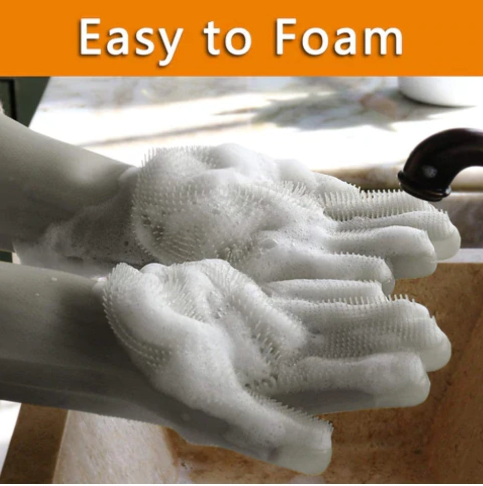 Soft & flexible silicone gloves deep cleaning every corner, fast foaming to save half of the detergent than usual, no scratches with bristly silicone on kitchenware & glass, replace all other cleaning supplies with one pair of gloves!