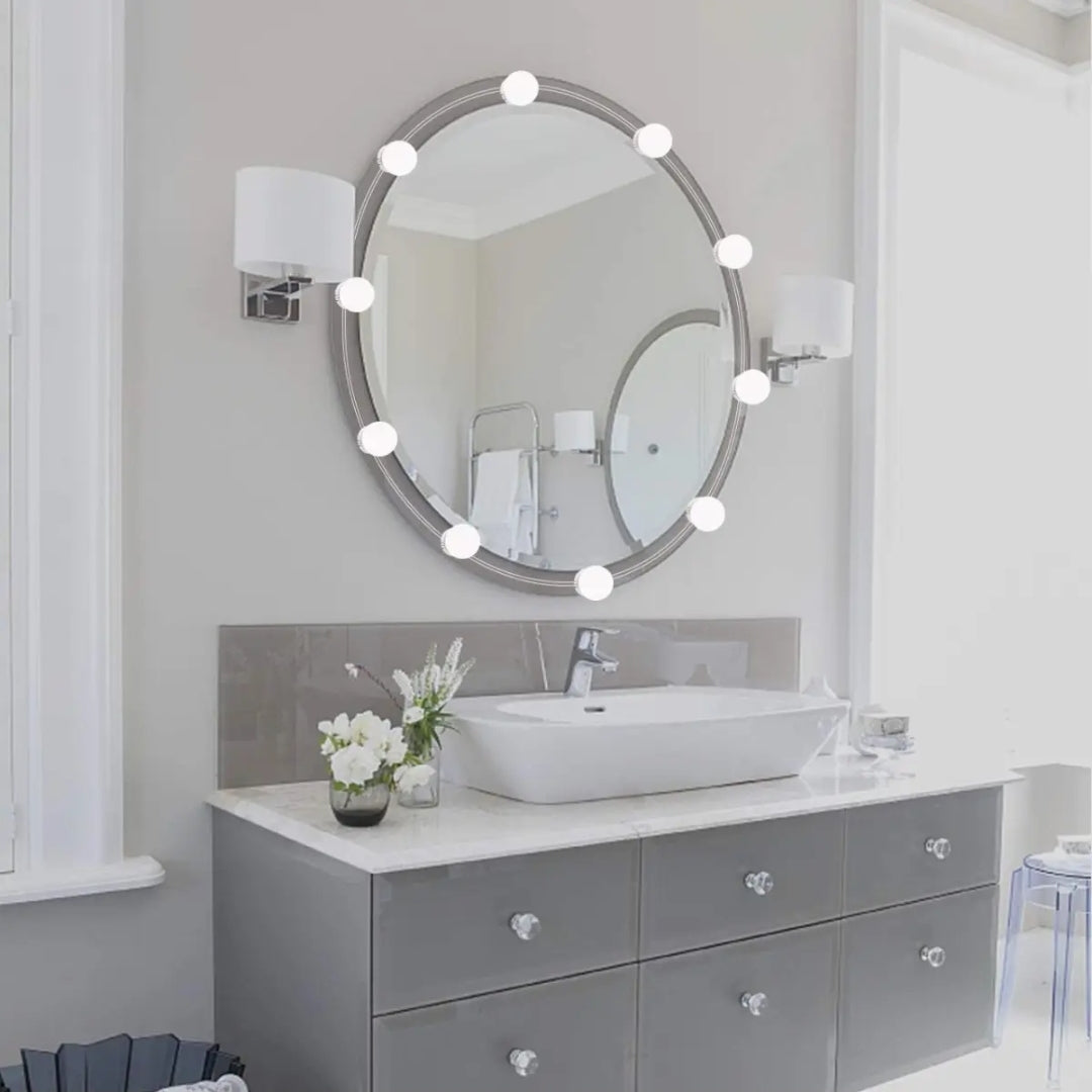 Vanity Light LED Bulbs For Mirror |Vanity Mirror Light LED Bulbs For Makeup Mirror Stand (10 Bulbs) | Portable Super Bright Mirror Studio Glow 3 Mode Vanity Led Bulb White, Off White & Yellow With 10 Bulbs